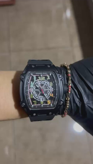 El reloj Richard Mille en color negro es una auténtica obra de ingeniería y diseño. Con su estructura innovadora y materiales de alta gama como el titanio y la cerámica, ofrece una combinación perfecta de ligereza, resistencia y lujo. Su estética moderna y vanguardista, junto con su compleja maquinaria, lo convierte en una pieza única para los más exigentes. Ideal para quienes buscan un reloj de alto rendimiento que también sea una declaración de estilo y exclusividad, el Richard Mille en negro destaca por su sofisticación, tecnología avanzada y elegancia sin igual.